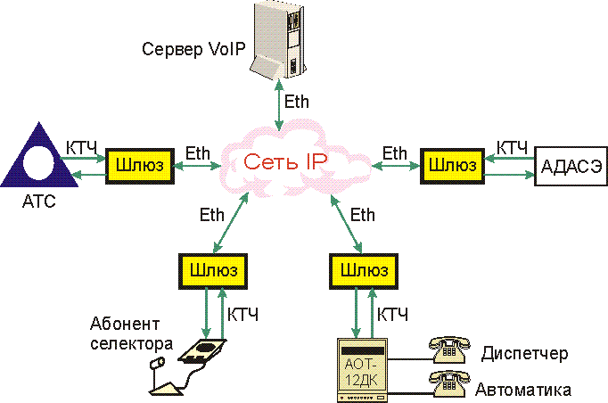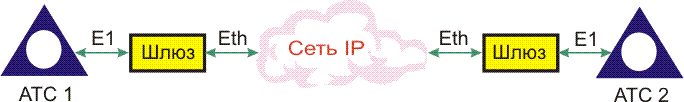 В данном случае шлюзы и сеть IP выполняют исключительно транспортные функции, т.е. шлюз на передающей стороне