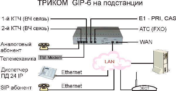 Благодаря возможности подключения телефонных аппаратов GIP-6 может использоваться