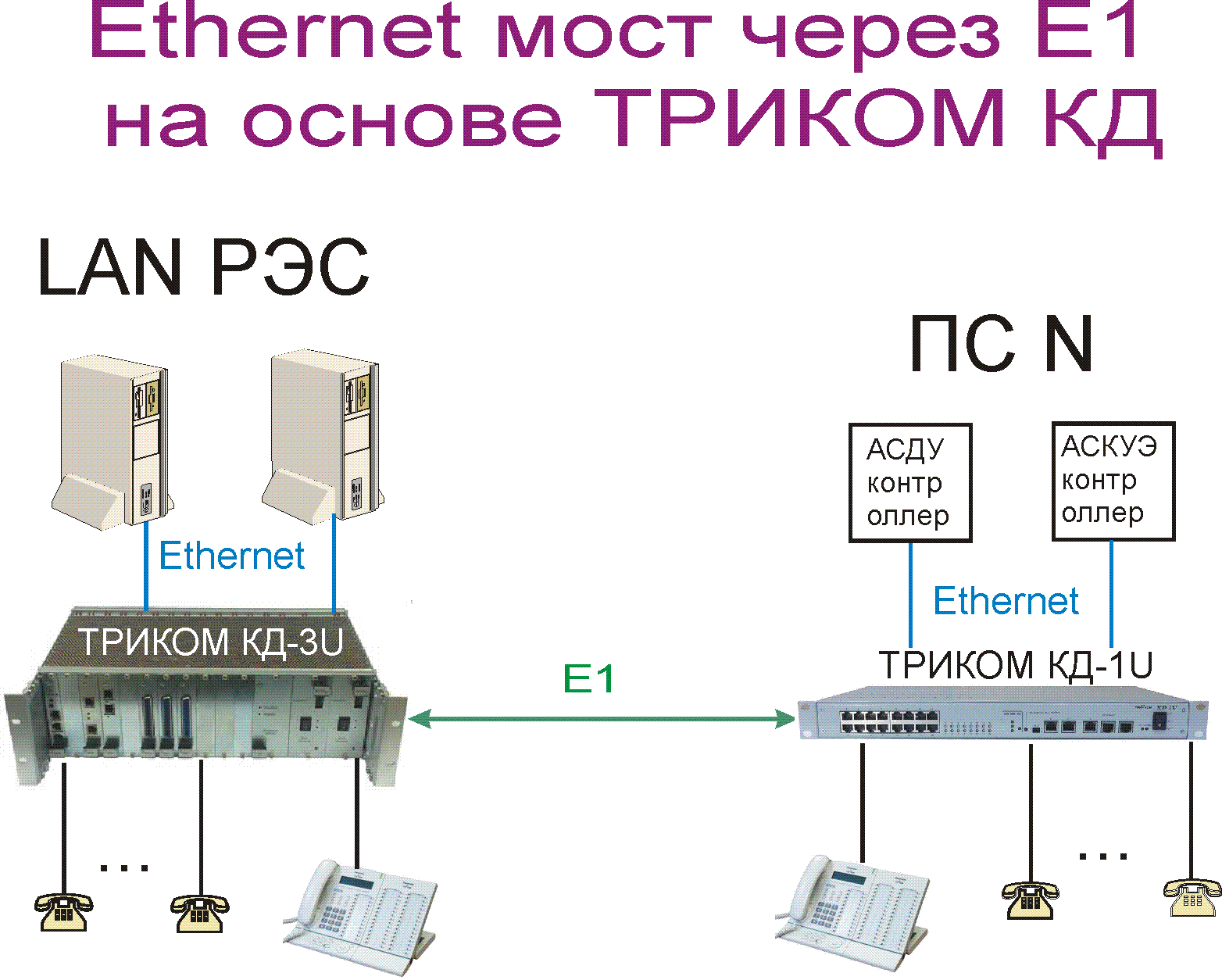 ТРИКОМ КД-1U позволяет строить многофункциональную иерархическую сеть передачи речи и данных.