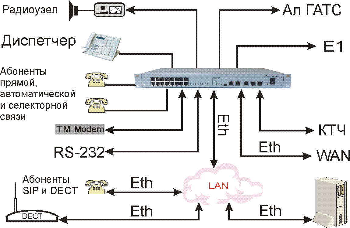 ТРИКОМ КД-1U Учрежденческо-производственная АТС с функциями диспетчерского коммутатора, АДАСЭ и мультиплексора |